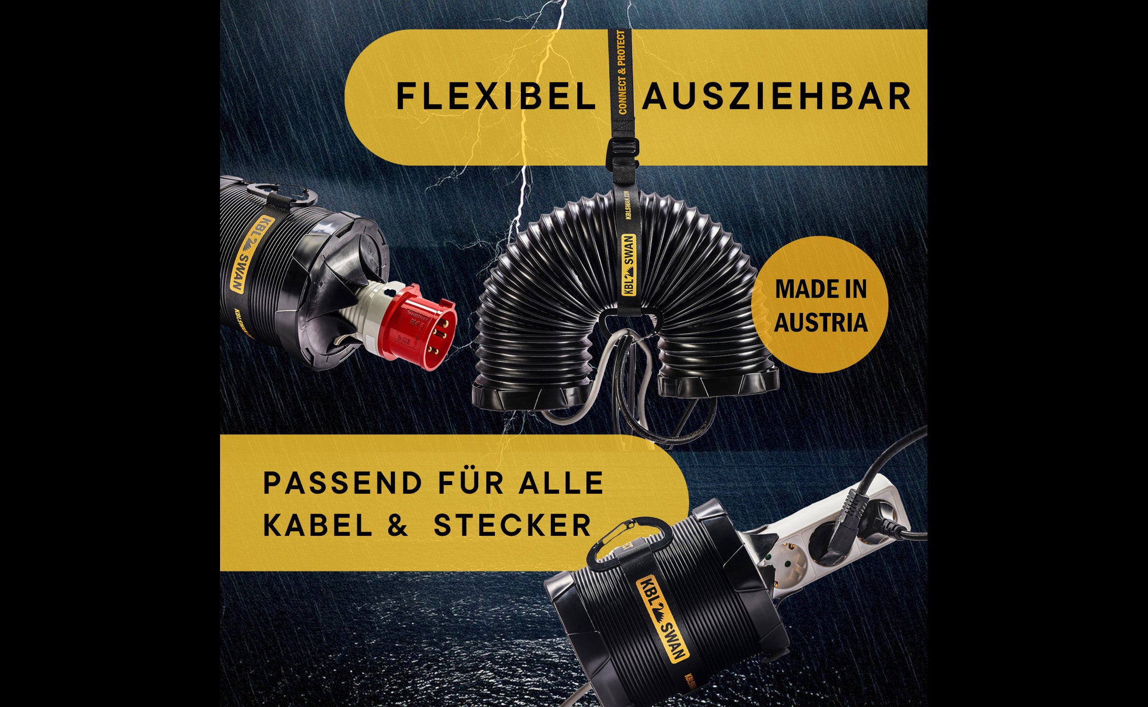 Sicherer Schutz für Kabel und Stecker bei jeder Witterung. Egal ob Regen, Schnee, Staub und Schmutz